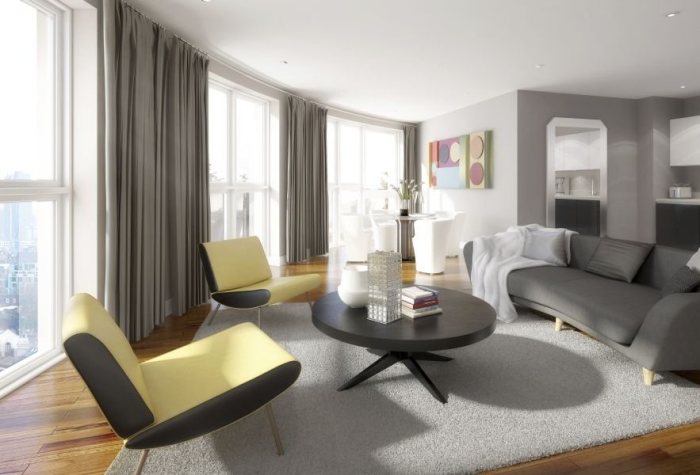 This new development is conveniently located in the heart of London, in the borough of Islington, close to Emirate Stadium, and is within easy reach of the city, Canary Wharf. Three modern design and well-designed tower, placed on a pedestal with space for shops and cafes.