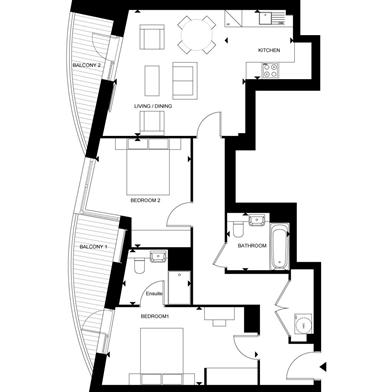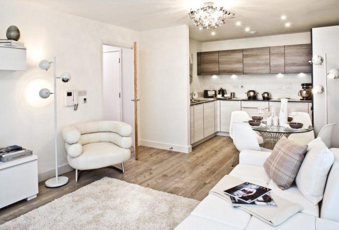 Apartments in UK to buy from us is to get an apartment the excellent quality, 5 years manufacturer warranty on all appliances and plumbing that is present in the apartment, and 10-year quality guarantee leading financial conglomerate HSBC. Stylish two bedroom apartment of non-standard layout on the fourth floor with two bathrooms, modern fitted kitchen, two balconies and approximately 78.6 sq. m cost £ 490000