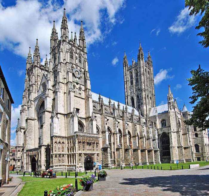 The most famous landmark of the city, of course, is the Canterbury Cathedral. It was founded by then-Bishop Augustine in 602 the year, received the name Cathedral of Christ the Savior. Still remained part of the beautiful stained glass Windows, created in the XII-th century. In 1174, the year the fire occurred, which destroyed a considerable part of the Cathedral, but in the next few centuries Canterbury Cathedral has been successfully reconstructed, moreover, added to his new buildings. The architecture of the Cathedral is a combination of not only a large number of separate chapels and premises, but also of various styles typical of the different eras, particularly the Eastern part contains the traces of the Romanesque style. Stained glass Windows belonging to the Cathedral of Canterbury, are true works of art. They depict scenes from the Bible, and some historical figures. Later was built the tower, which from a purely English style is closely intertwined even the French. Around the Cathedral there is a considerable number of the most beautiful gardens. Canterbury Cathedral is the burial place of many bishops, and also the August persons – Henry IV-th, his wife, and the Black Prince. Not far from this magnificent Cathedral is the Roman Museum, the famous floor mosaic. Besides that, there are a lot of amazing places, like the gates of Christ Church, or the whole area that immerses every visitor into a medieval atmosphere, after all, the house there built in the Tudor style. Also in Canterbury is the Church of St. Martin, founded by Bertha of Kent, and St Augustine’s Abbey.