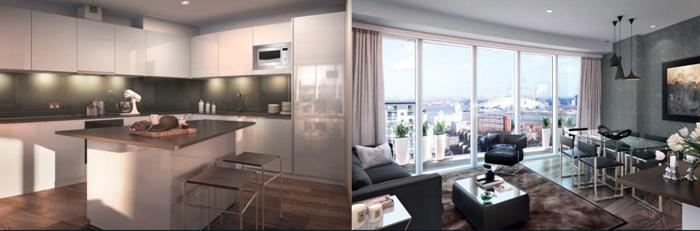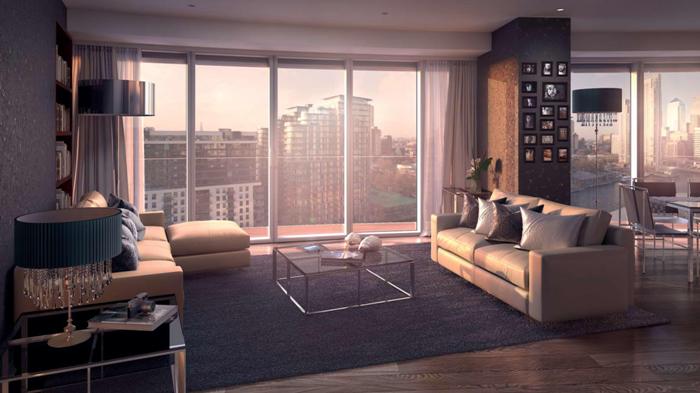 The architecture of the tower allowed to combine in it a brilliant choice of apartments of different sizes and shapes – from small studios and one-bedroom apartments to luxurious penthouses of 3 bedrooms, located on two levels. All apartments have stylish outdoor space – a balcony or terrace, which vary in size with increasing level. At the level of 43 to 45 floor is a Brasserie, a bar and restaurant which are fabulous and exclusive setting – whether you just want something to drink, or you need to arrange a formal dinner. From any angle of the restaurants you can enjoy stunning views of the prospects of CanaryWharf. All residents of the tower will also benefit from an exclusive private salon and a large cinema room on the lower level.