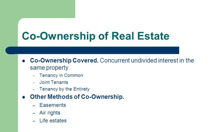 The most common type of ownership – joint tenants. This is the type of ownership in which each owner has equal rights and each owns 100% of the property. In the event of death of one of the owners, his share automatically passes to the other owner. Approximately 63% of homeowners own property that is on the basis of the joint tenants.
